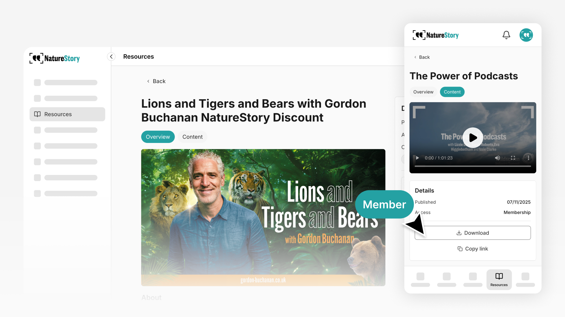They tap a resource, view or download instantly. Videos stream in-app with standard playback controls. PDFs download for offline access. Everything works smoothly without sending members to external platforms.