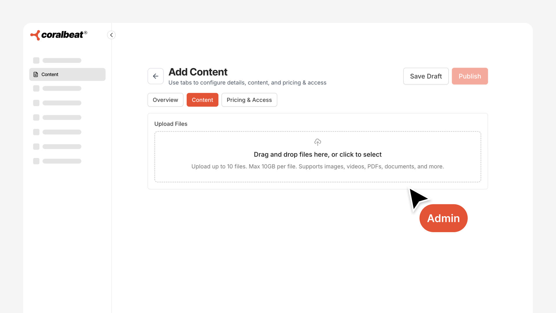 Your knowledge business lives in your Content Library. Upload course modules organized by topic. Offer sample lessons freely to demonstrate value, then gate full curriculum behind paid tiers. Add downloadable workbooks, templates, and worksheets that complement your training.