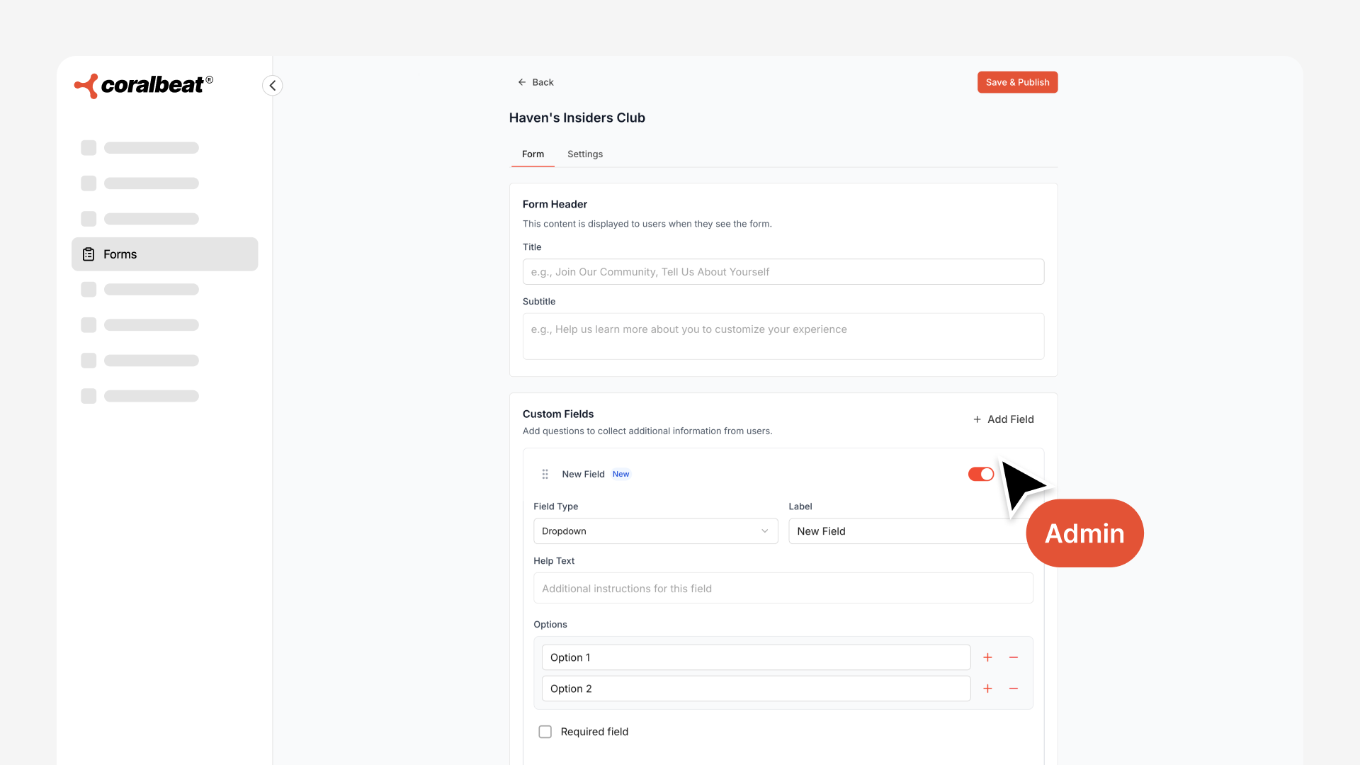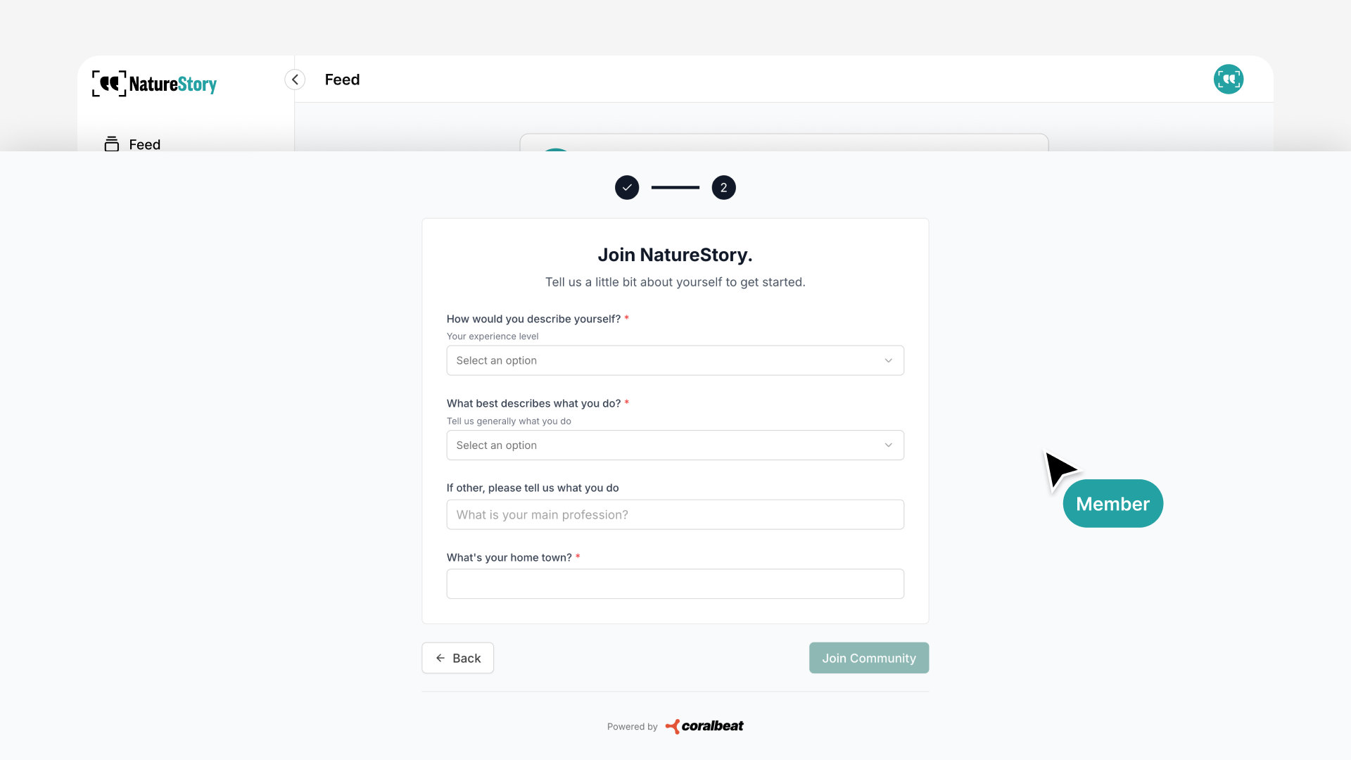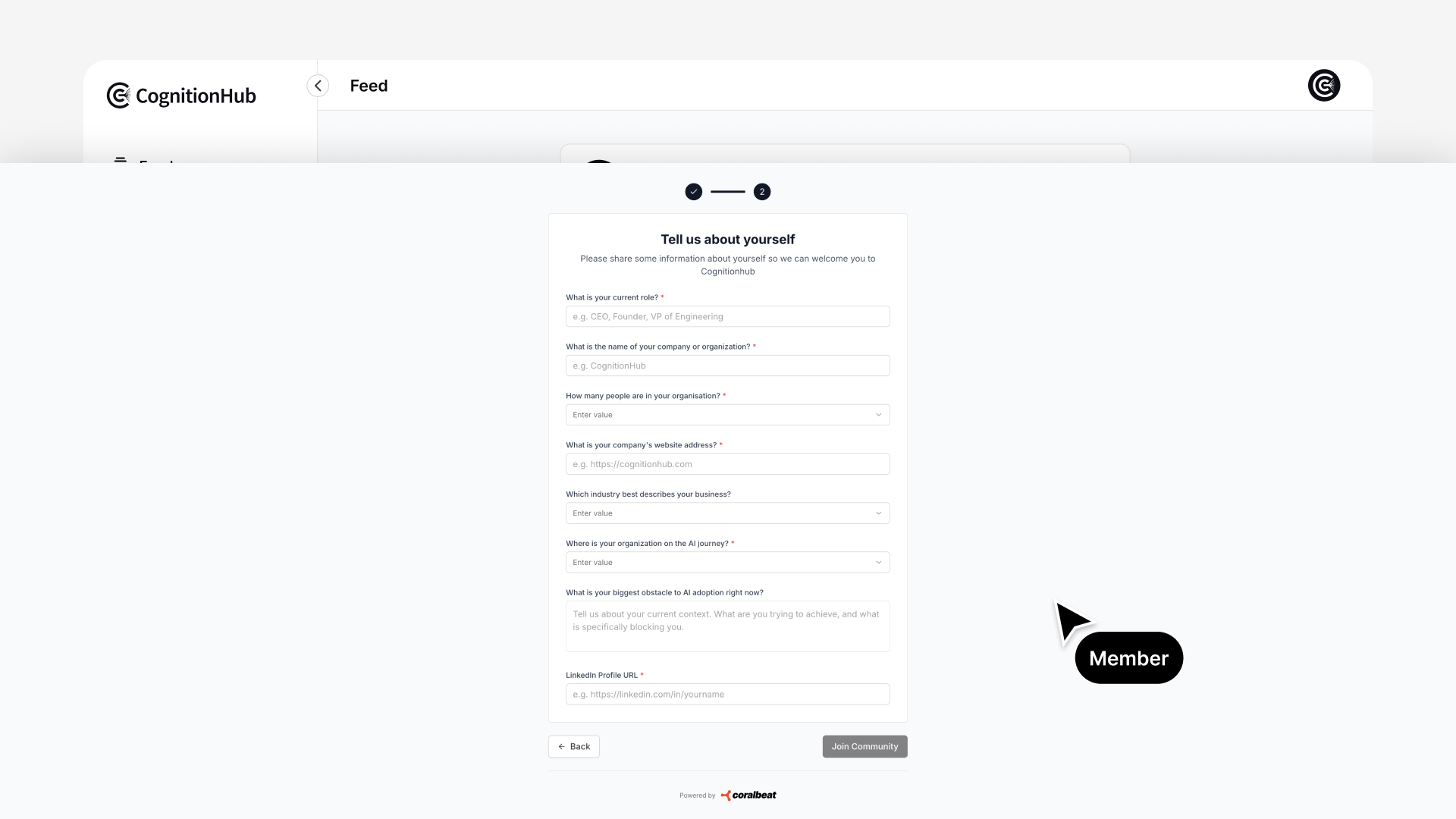 Coralbeat's custom signup forms put you in control of your member onboarding. Rather than settling for basic name and email fields, you design forms that capture the information that actually matters to your community: professional background, experience level, interests, location, or any data point that helps you understand and serve your members better.