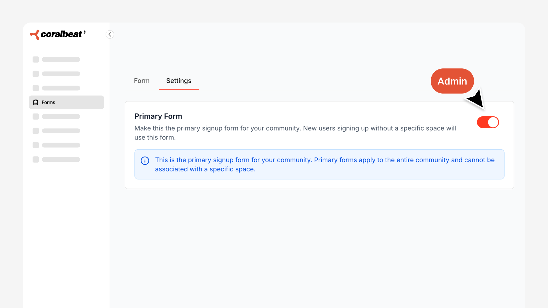 Launch with a straightforward primary form collecting basic member information. As your community grows and you identify different audience segments, add space-specific forms to create tailored experiences.